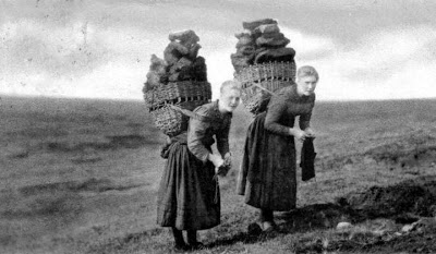 Alternatively, conforming to known traditional turbary practice elsewhere and suited to a variety of difficult surfaces, something more literally a basket, such as these photographed in a bog peat turbary on Skye, could have been used.