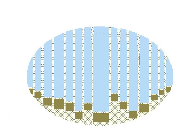 Other considerations apart (see under "'Dydays', 'Laggying', and 'Baggerbeugels'."), they would have removed the bars or baulks between the pits in each strip to allow the use of small boats, or even primitive rafts, to ferry the bulky stacks of turves and lumps of clay to the edge of the turbary, progressing to this: